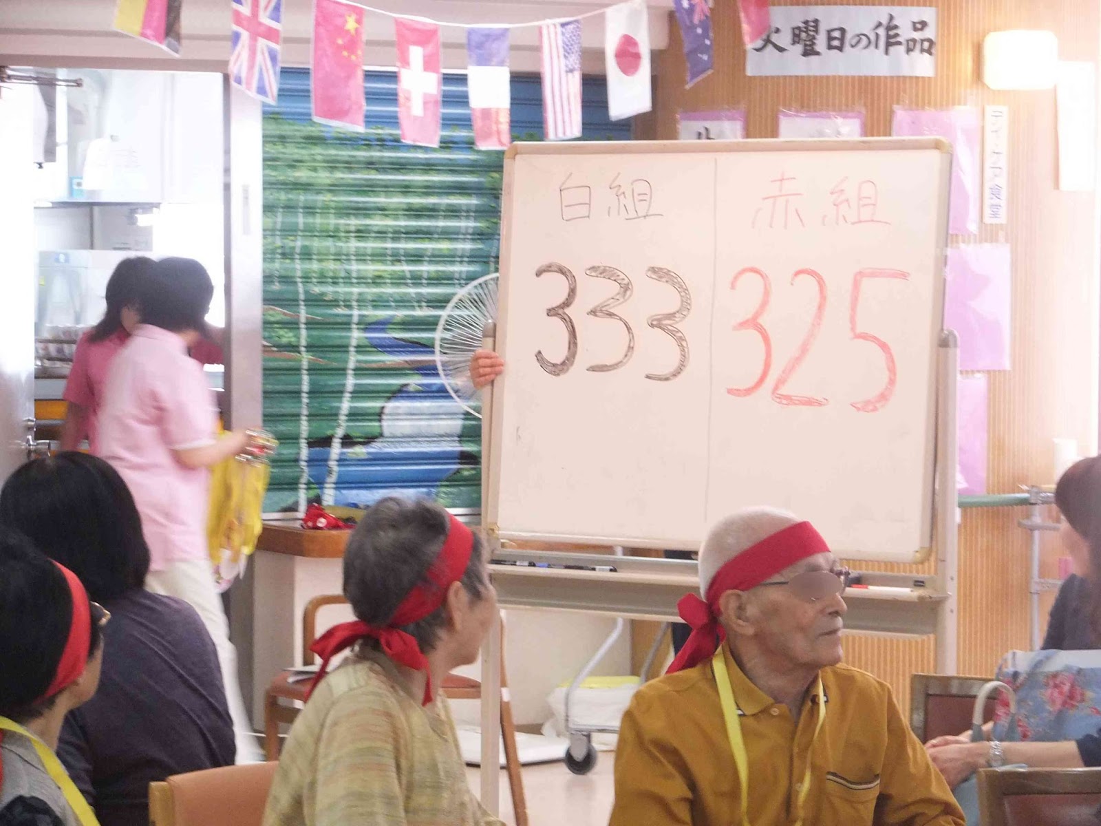 先日セージュ山の手デイケアでは、夏の大運動会が行われました。ご家族も合わせると約60名ほどの大人数で、紅白に分かれさまざまな競技が行われました。優勝をめざす皆さんの気迫、熱気